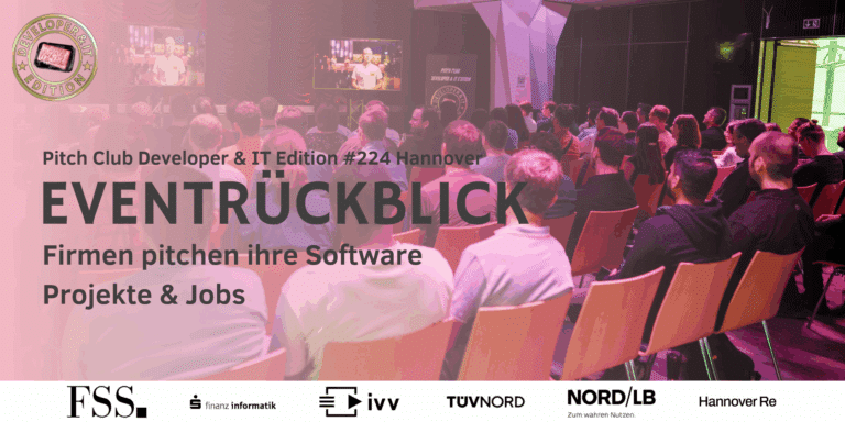 Bei der Pitch Club Developer & IT Edition #224 verwandelte sich die RP5 Stage in Hannover in einen Treffpunkt für IT-Talente und sechs spannende Unternehmen. Jede Company hatte genau sechs Minuten Zeit, ihre Technologien, aktuellen Projekte und Karrieremöglichkeiten auf den Punkt zu bringen – kurz, knackig und mit klarer Botschaft.